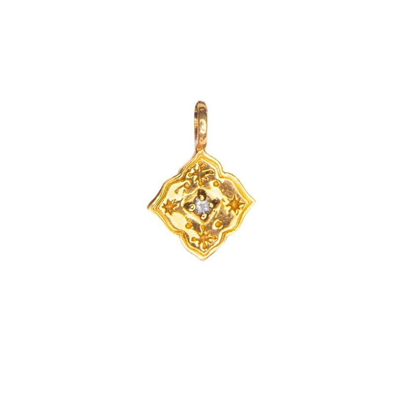 The moon is a symbol of the cycles of life and has inspired humanity throughout the ages. This adorable charm set with white topaz - a stone of hope and inspiration.