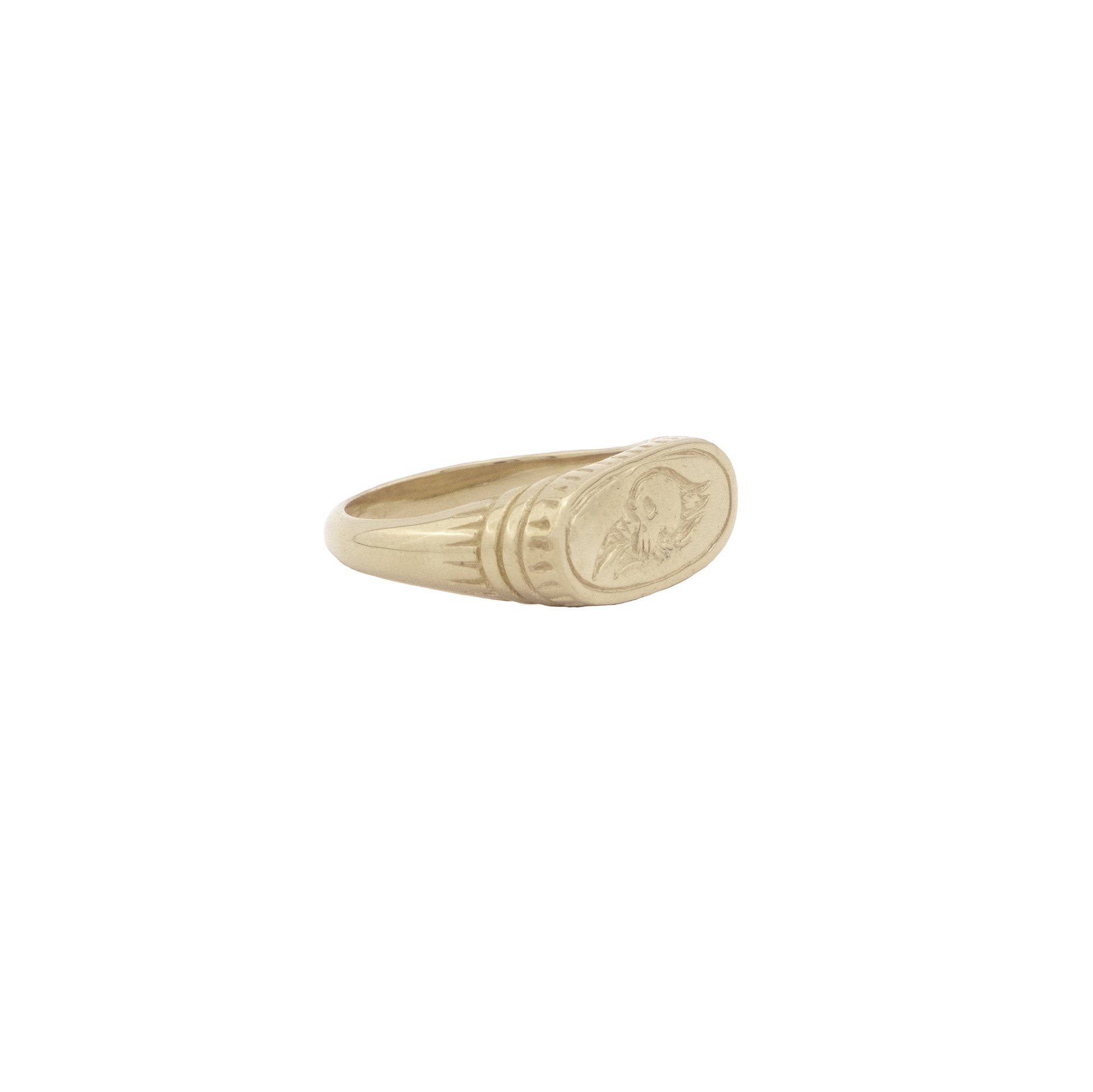The raven is a revered figure in mythology known for its role as a guide and protector and as messenger between the realms of the living and the divine. The central motif, a skull nestled within the raven’s head, represents the cyclical nature of existence and the raven’s role as a harbinger of fate and wisdom.